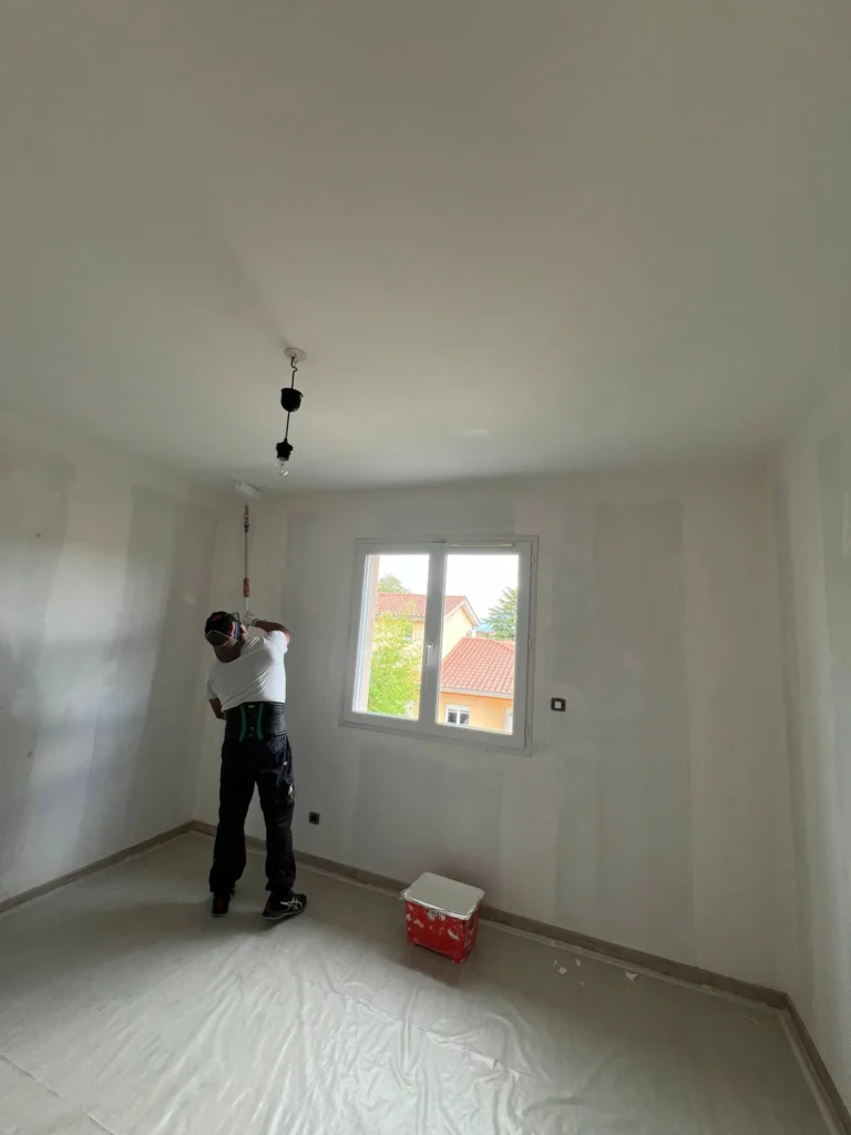 Notre équipe intervient avec soin : préparation, protection des zones, plâtrerie, peinture et finitions impeccables.